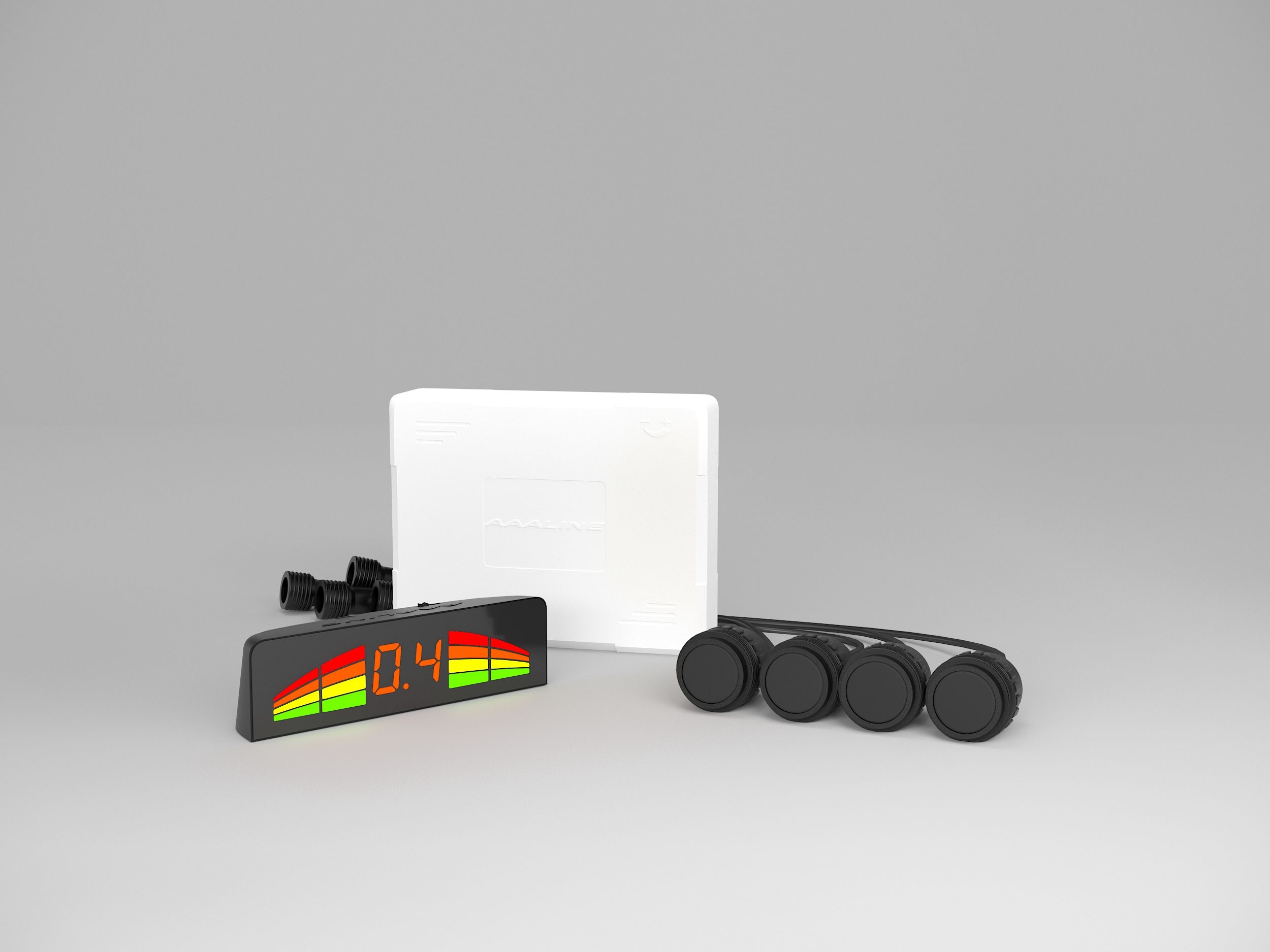 - Возможность установки в передний бампер (Датчики включаются при нажатии на тормоз).Выбор расстояния срабатывания для передних датчиков (0,6 либо 0,9 метра).