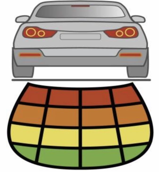 • Каждому датчику парковочной системы на мониторе соответствует своя шкала. По количеству, цвету и положению сегментов пользователь сможет определить где находится препятствие, даже в случае, когда камера з/вида к примеру испачкана.